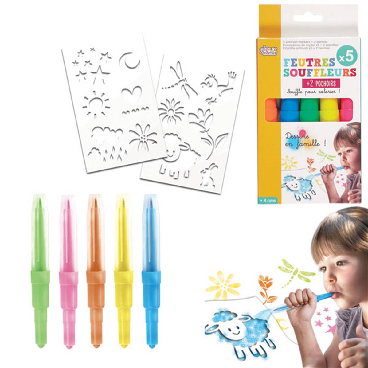 5 Feutres Souffleurs et 2 Pochoirs