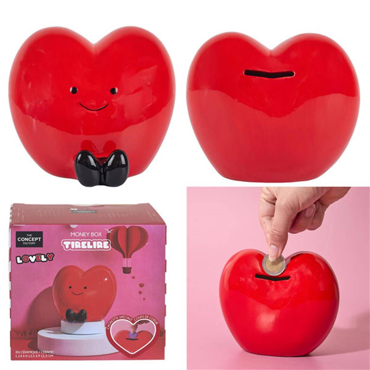 Tirelire Coeur Kawaii 14.2 x 12.5 x 11.5 Cm
